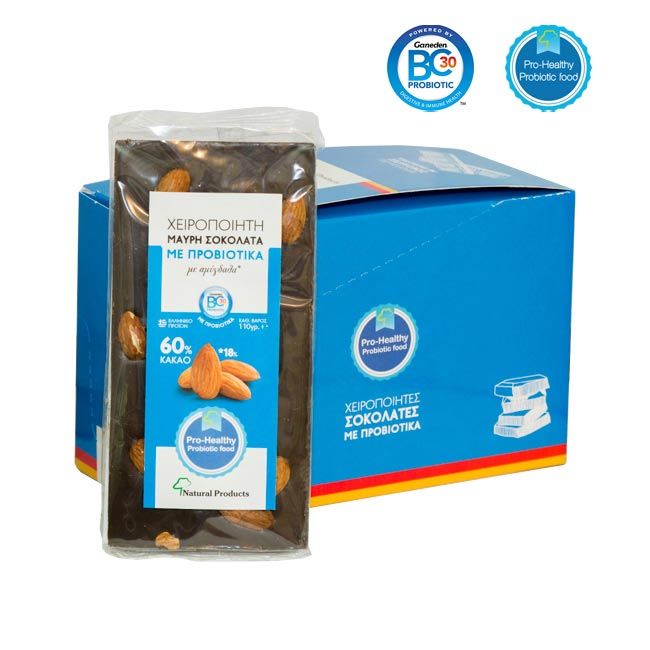 Χειροποίητη Μαύρη Σοκολάτα Με Αμύγδαλα και ΠΡΟΒΙΟΤΙΚΑ 110 gr